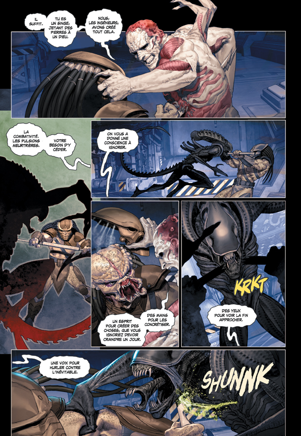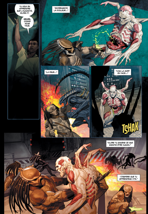 » Se déroulant en parallèle du Tome 2, la troisième partie du cycle FIRE and STONE dans la saga PROMETHEUS raconte ce qu’il est advenu du mutant Elden alors que Galgo s’est enfui vers LV-223, laissant son vaisseau en proie aux Predators et aux Aliens.