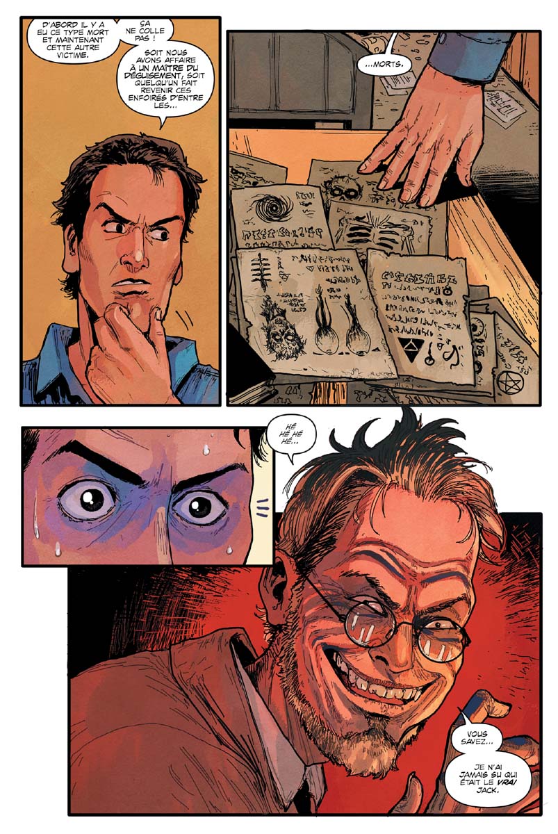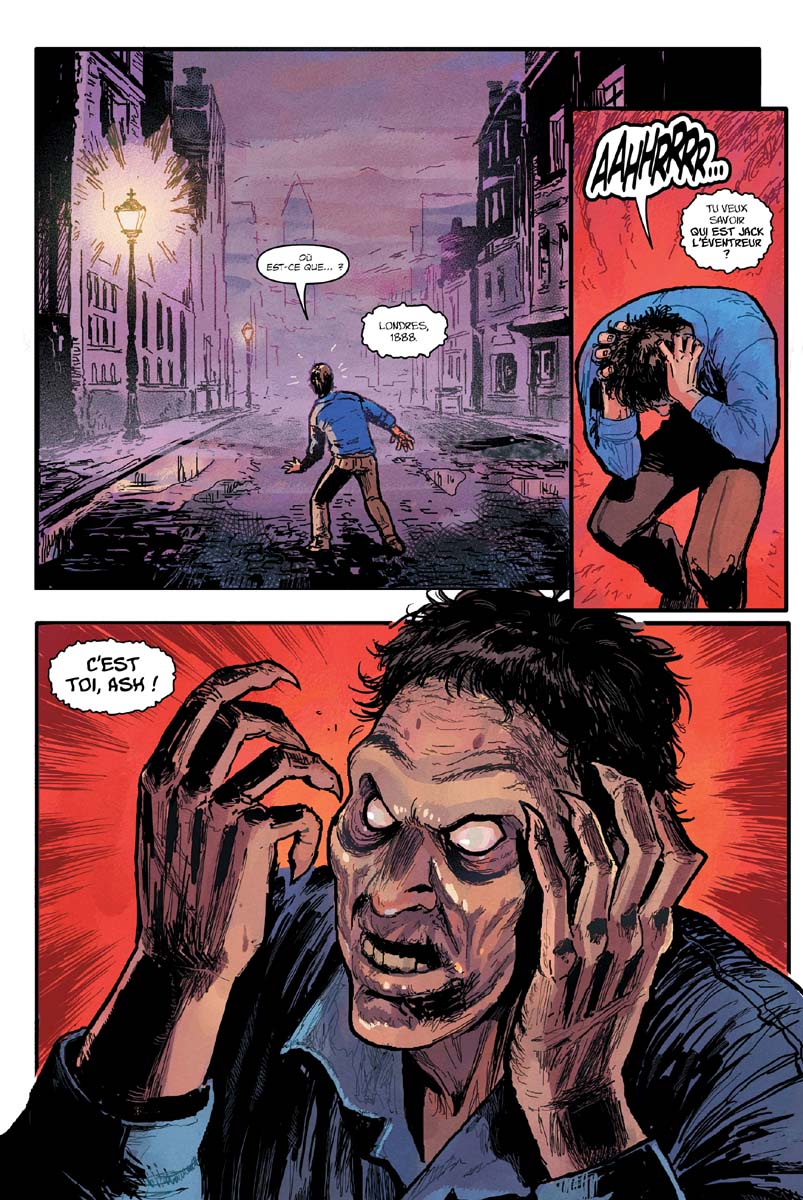 EVIL DEAD 2 : VENGEANCE ! contient 4 histoires complètes où Ash Williams, le célèbre tronçonneur de deadites au boomstick fumant et à la langue bien pendue s’attaque à 4 monstrueuses menaces : Dracula, Jack L’éventreur… Hilter… et même les martiens de La Guerre des Mondes !