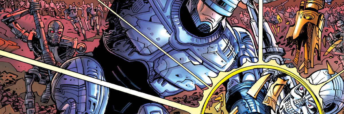 « Venu d’un futur dans lequel les machines dominent le monde, un soldat de la Résistance cherche à éliminer le responsable de la suprématie de Skynet : RoboCop. Des Terminators interviennent pour empêcher l’avenir de s’altérer… mais quelque part dans le temps, Alex Murphy s’engage dans une bataille contre les cyborgs meurtriers et les humains qui veulent le tuer… »
