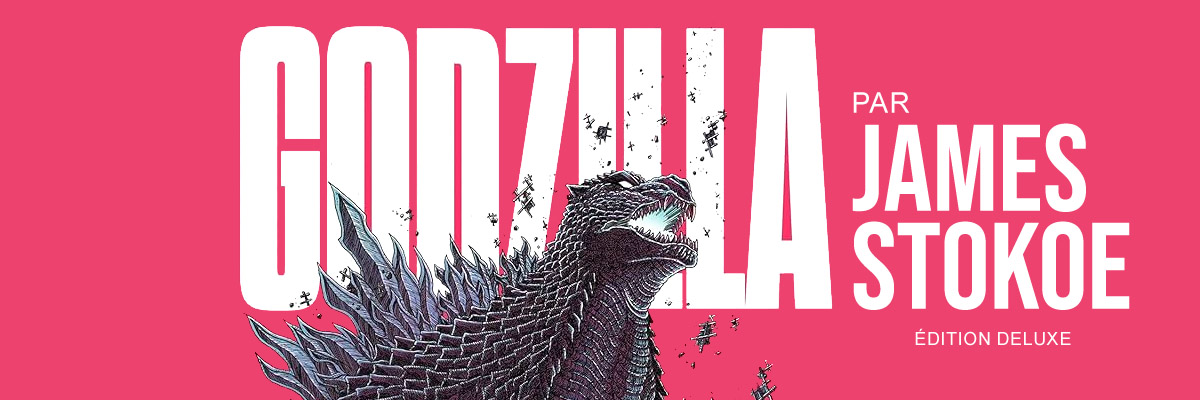 Cet album grand format, relié, à couverture cartonnée épaisse, réunit toutes les planches scénarisées et dessinées par James STOKOE sur GODZILLA :